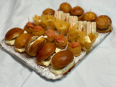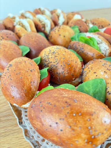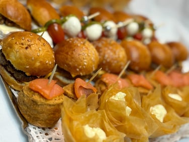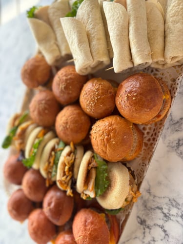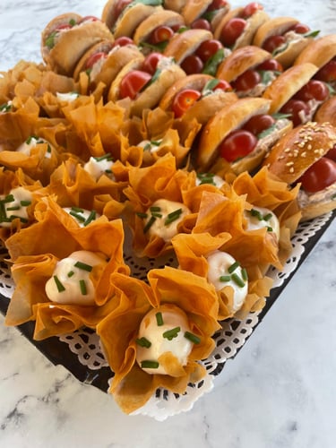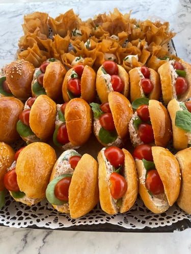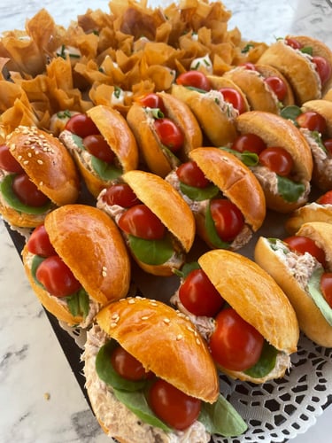 Je vous confectionne des plateaux de petits fours de la navette au fromage, mozza ou thon au mini burger classique.
