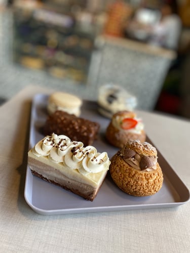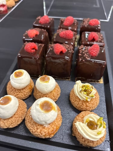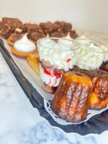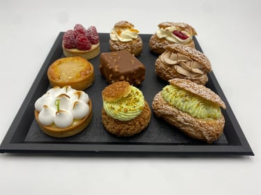 Je réalise pour vous vos desserts préférés sous forme de mignardises sucrées : tartelette au chocolat, tartelette aux fruits, macarons, choux garnis.